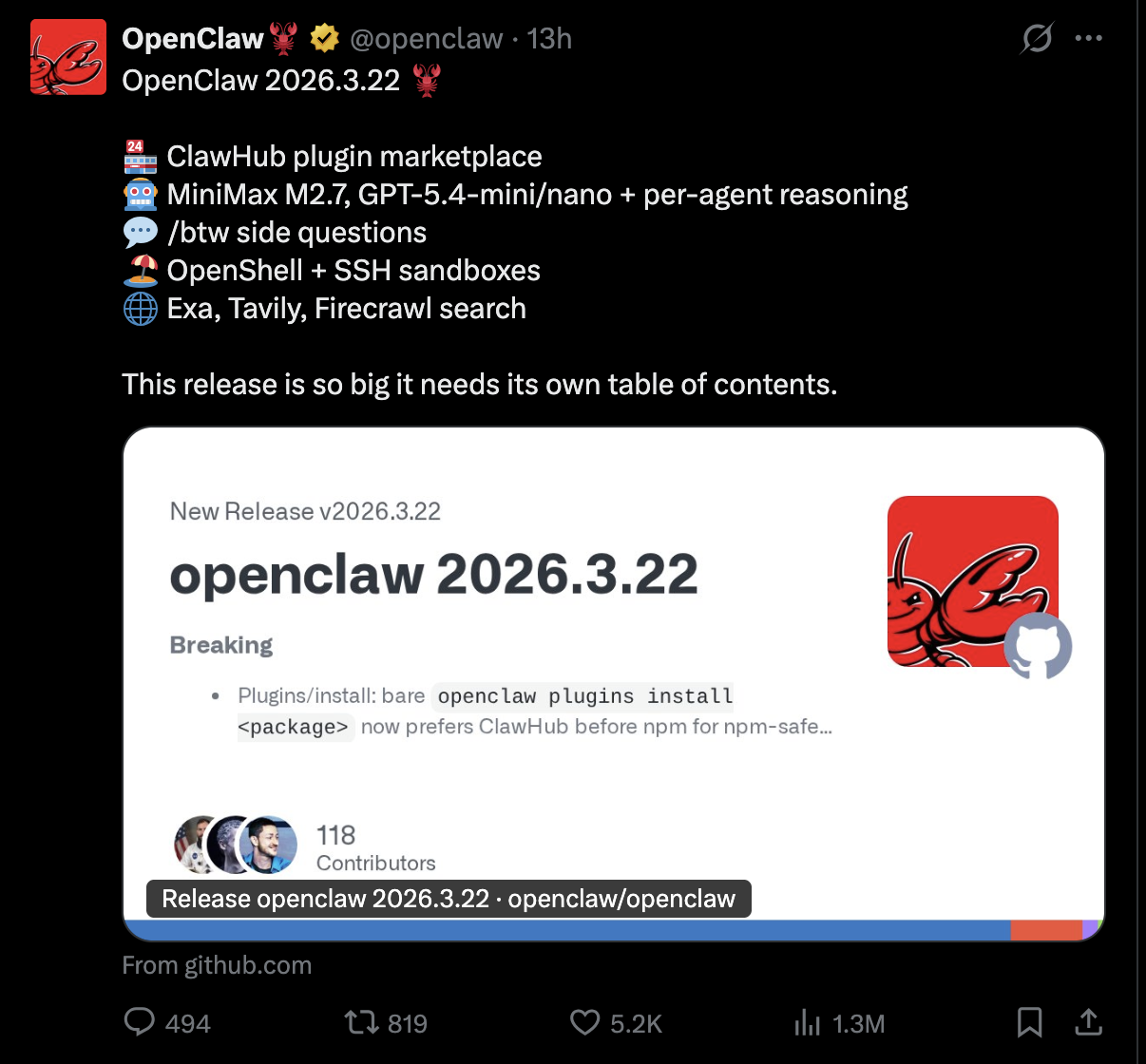 https://github.com/openclaw/openclaw/releases/tag/v2026.3.22-beta.1