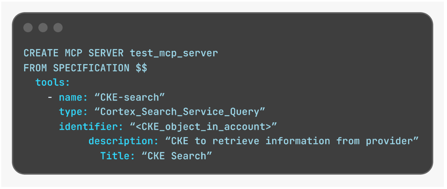 当 Cortex 知识扩展功能在您的 Snowflake 账户中完成部署后,即可作为 Cortex 搜索服务工具集成至您的 MCP 服务器中。