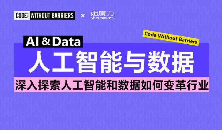 我们将在上海举办首场 Code Without Barriers 系列活动,聚焦“人工智能与数据”。届时,微软、埃森哲、陶氏化学的技术高管将与我们共同探讨 AI 和 DATA 如何重塑行业格局,同时,我们特别邀请了一位 AI 领域的女性创业者,分享她的创业故事和经验,为女性创业者赋能。