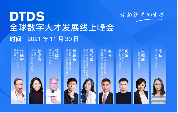 2021 年 11 月 30 日,DTDS 全球数字人才发展线上峰会盛大举行,通过在线直播平台汇集了数千位参会者共聚一堂,包括众多行业企业的组织人才发展负责人、数字化人才培养主管,以及关注人才数字化技能提升的领导者等,大会邀请的来自政府、金融、汽车、工业制造等行业的数字化转型专家和组织人才发展专家,为观众分享了精彩纷呈的主题演讲。