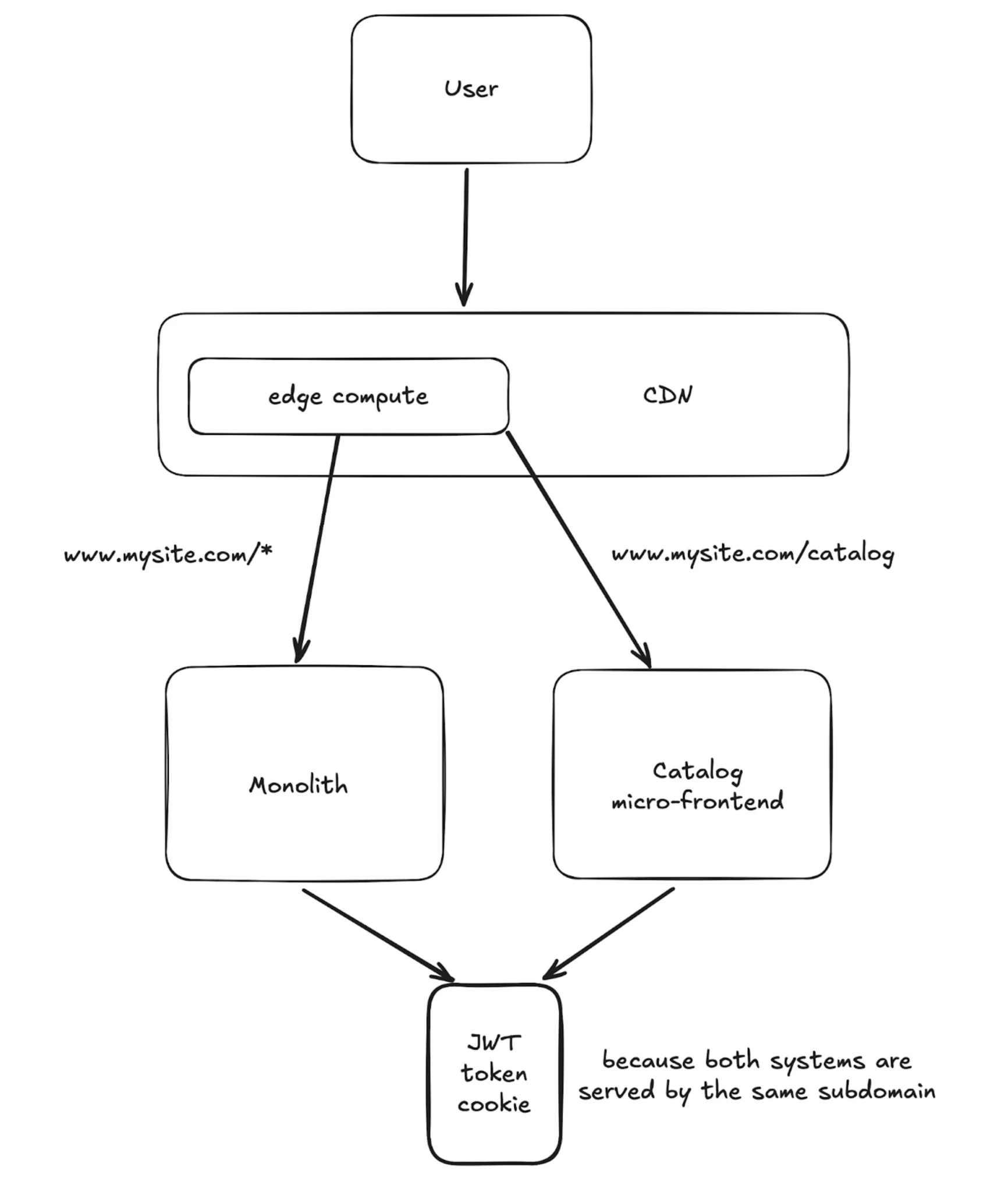 身份验证的处理通常比团队的预期更简单。只要所有微前端与遗留应用共享相同的子域,它们就可以访问相同的 cookie 和会话数据。