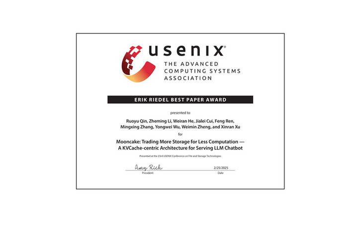 这些问题该如何解决?在当前大模型产品中又如何落地相应解决方案?郑纬民将在本次演讲中结合 Kimi 幕后的大模型推理架构 Mooncake 对以上问题进行深入剖析。Kimi 从初期频繁算力扩容仍宕机,到如今能平稳承载高速增长的流量,Mooncake 发挥了关键作用,且该成果已于近期荣获第 23 届 USENIX 文件与存储技术会议(FAST25)最佳论文奖(https://www.cs.tsinghua.edu.cn/info/1034/6611.htm)。