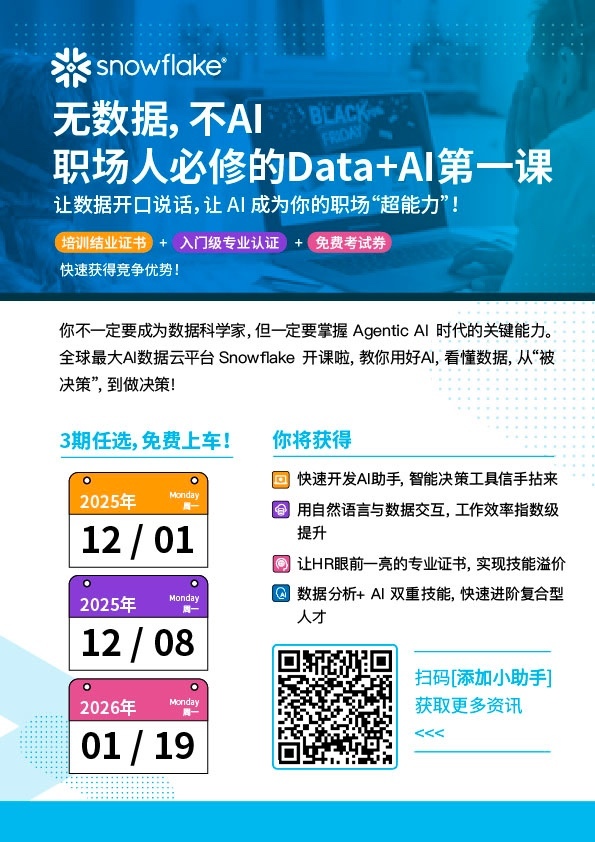 点击链接立即报名注册:Ascent - Snowflake Platform Training - China