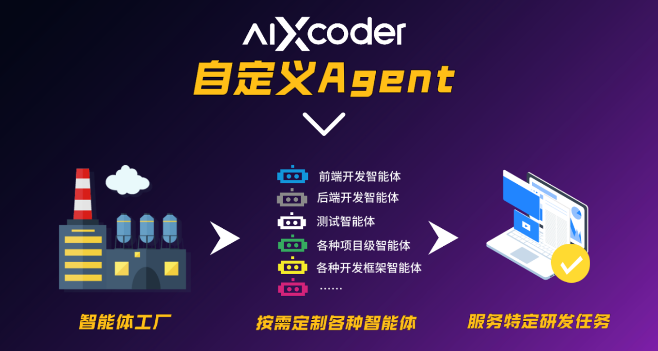为此,aiXcoder 7.0 应运而生——它不再仅仅是通用型 AI 编程工具,而是专为企业真实的复杂软件开发场景打造的智能体定制平台。通过自定义智能体实现一套跟着需求一起进化的软件开发方式,以应对不断迭代的研发需求。