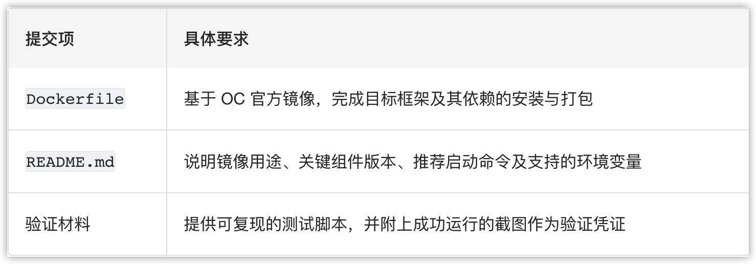 铺平这条路,不止于官方的底层支撑,更源自广泛开发者的集体智慧与共创。为此,OC 联合 InfoQ 发起开发者共建计划,首期「Agentic AI 容器计划」即日上线,旨在推动主流 AI 框架与 Agent 在 OC 开箱即用:通过开源全部 Dockerfile 与部署文档,扫清适配障碍!
