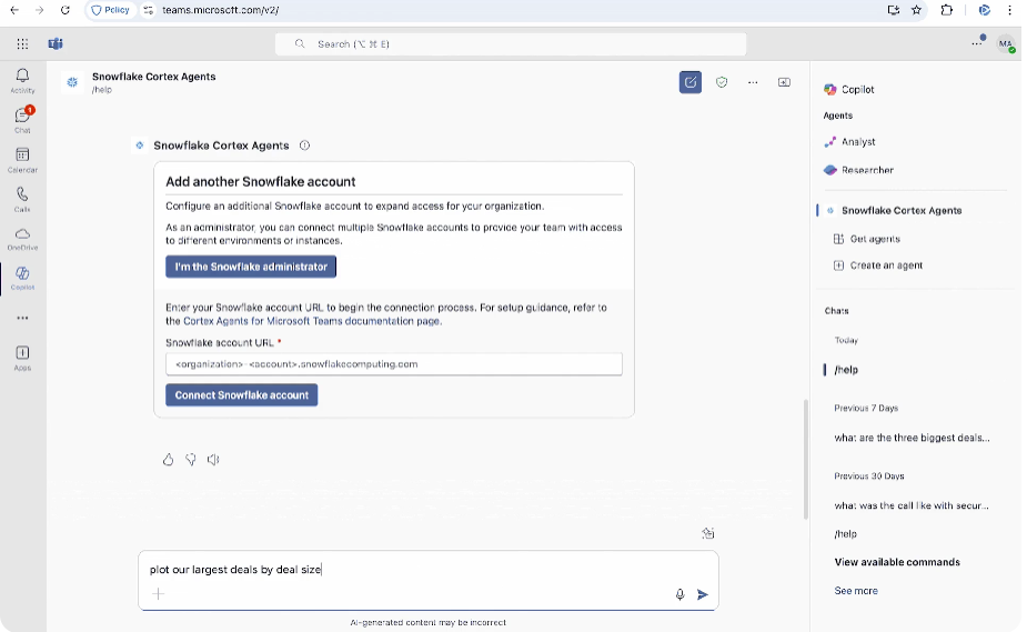 无论你是数据科学家、营销经理还是企业高管,最实用的莫过于那些“能帮你高效工作、少走弯路”的易用工具。在日常工作中借助 AI,不仅能为你带来明显优势,还能助力你形成有价值的见解,从而更快地推动事情取得进展。我们为 Microsoft 365 Copilot and Microsoft Teams 打造的 Snowflake Cortex Agents,正是为了帮助客户实现这一目标。