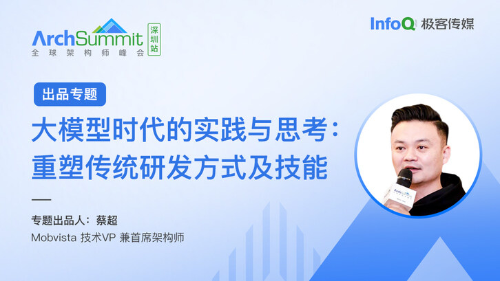 7 月 21 日 - 22 日, 在 ArchSummit 全球架构师峰会(深圳站),Mobvista 技术 VP 兼首席架构师蔡超,将担任「大模型时代的实践与思考:重塑传统研发方式及技能」的专题出品人,在此次专题中,你将了解到在新的大模型时代下,我们如何应对传统研发方式的变革,以及如何充分发掘和培养新技能。