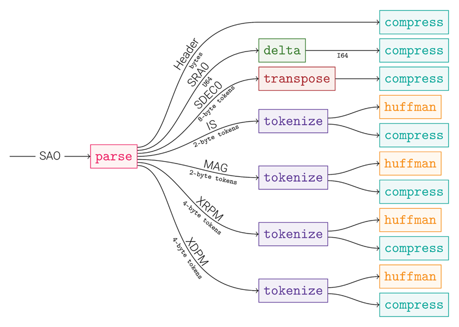 在内部基准测试中,针对结构化数据集(例如,Silesia压缩语料库的“sao star”记录),OpenZL 显示出了显著的增益。通过解析结构化记录,将它们分割成字段(数组的结构),并应用领域感知变换,如差分编码,它实现了:
