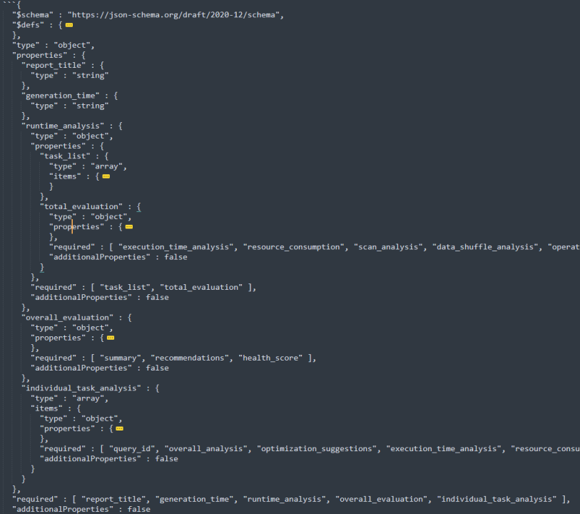 在任务评估时,要求 AI 针对特定维度进行分析,如运行时间、资源消耗(CPU 和内存)、数据扫描情况及其对集群的影响等。通过结构化的 SOP 限制 AI 的分析框架,使其在指定范围内输出更稳定、可靠的评估内容。