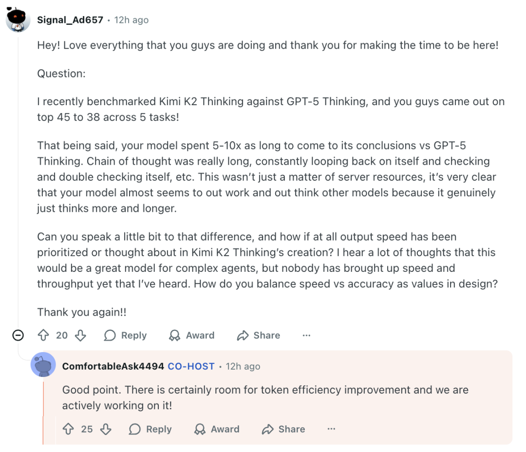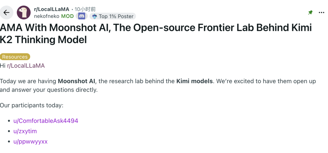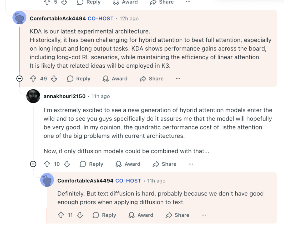 而今天凌晨,杨植麟本人和其他两位联合创始人对 K2 Thinking 的一系列问题作出了首次回应,他们在 Reddit 上开展了场干货满满的 AMA(有问必答)活动,直面网友的一大堆犀利问题。
