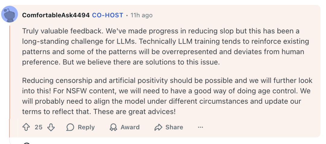 还表示团队也意识到模型的“人性张力”不足,未来版本可能在情绪表达上更开放、更真实