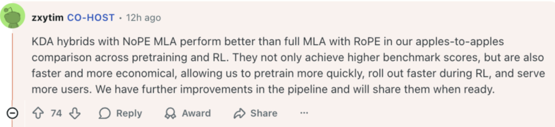月之暗面联创周昕宇补充称,团队正在开发更多关于 KDA 改进方案,完成后会与大家分享。