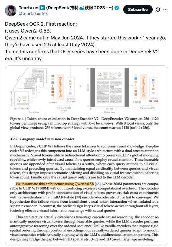 而在 DeepSeek-OCR 2 中,这一思路被进一步推进。