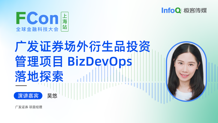 FCon 全球金融科技大会,将于 11 月在上海召开。广发证券项目经理吴悠将发表题为《广发证券场外衍生品投资管理项目 BizDevOps 落地探索》主题分享,从投资管理系统研发团队的研发实践出发,结合真实的项目痛点(如业务需求井喷,团队规模速增等),阐述相关的转型理念及落地方案。