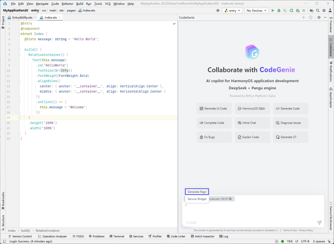 只需将你的 APP 截图或设计稿截图(JPG/PNG)上传至 CodeGenie ,即可生成可编译运行的鸿蒙 ArkTS 页面代码,包括 ArkUI 组件、布局结构、组件属性等,快速完成页面框架搭建。