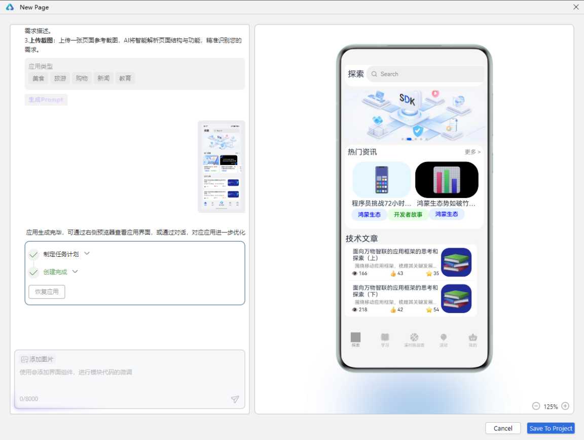 无论你是想要快速原型验证的创业者,还是需希望提升开发效率的开发者,这款工具都将为你打开新的可能性。快来试试用一张图片,生成你的第一个鸿蒙页面吧。