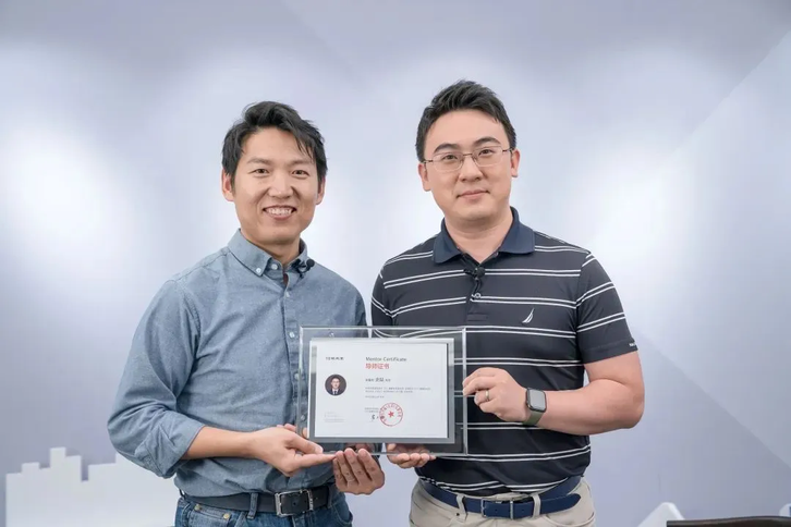 北京极客邦科技创始人兼 CEO、TGO 鲲鹏会发起人霍太稳现场为史喆博士颁发导师证书