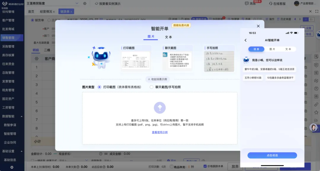 “好业财”是畅捷通信息技术股份有限公司(下称“畅捷通”)旗下一款面向小微企业的业财管融合数智经营平台。2024 年 8 月,该产品开发上线“多模态智能开单”功能,针对性解决传统开单过程中存在的手工录入效率低、易出错、多渠道信息整合难度大等问题。在百度飞桨和文心大模型的技术支持下,能够实现语音、文字、表格、图片、PDF 等多种形态的内容识别,准确理解下单商品内容和详细要求,提高开单效率。