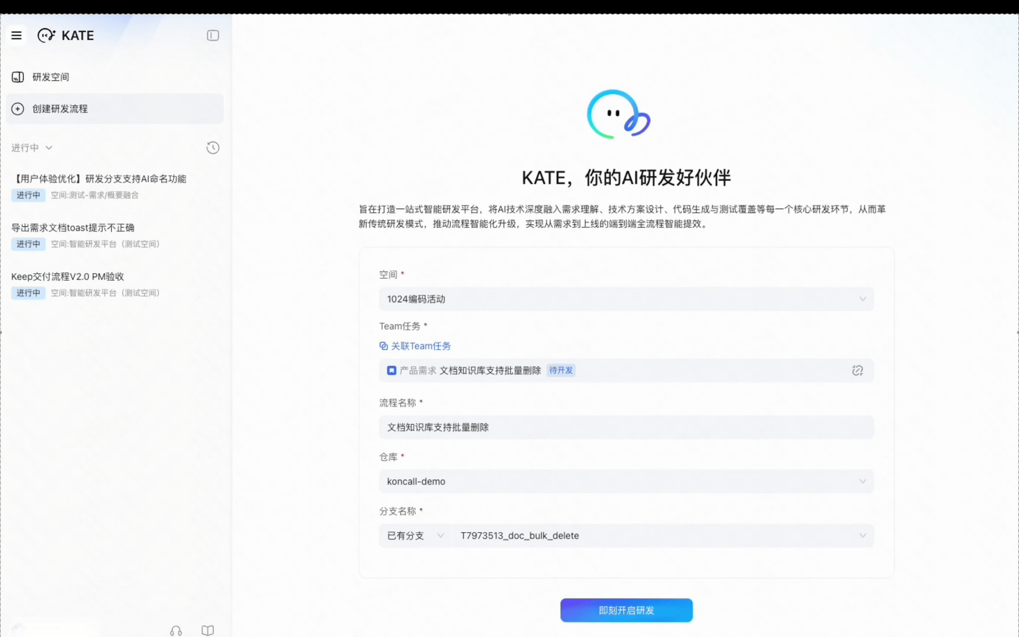能支持多种研发模式 :不同 AI 研发成熟度的需求,它们的交付流程都是一样的,差异点在于开发方法。因此我们无法为不同的需求、不同的开发方法匹配不同的平台,而是要思考如何用一套平台,来支撑多种开发方法:完全不使用 AI 的标准开发流程、只用 AI 辅助编码的开发流程、更激进的使用 AI 辅助开发或协同开发的开发流程,都应该在同一个平台上完成。这样,我们的需求交付效率,才可以随着人的能力的提升、AI 能力的提升,持续变快。