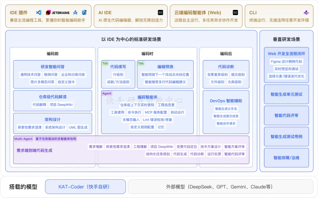 平台与工具:我们将智能化 1.0 阶段沉淀的产品 Kwaipilot 进行了全面升级与开放,它在快手内部历经数千名研发同学的反馈与打磨,已完成三代演进:Code Copilot → Code Agent → Multi-Agent & Agentic Coding,目前已在海外发布,产品名为 CodeFlicker,希望服务全球开发者,也欢迎国内同行下载体验。后续,我们还会持续把快手在智能化 2.0 阶段的探索成果融入 CodeFlicker,希望让更多企业级开发者受益。