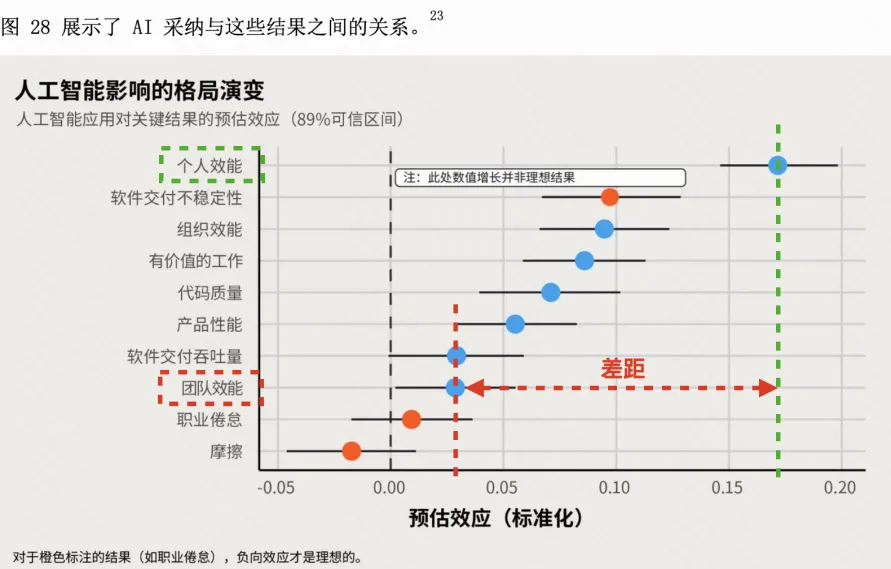 在协同良好的组织中(如流程清晰、数据打通的团队),AI 能使 DevOps 效能再提升 25%。