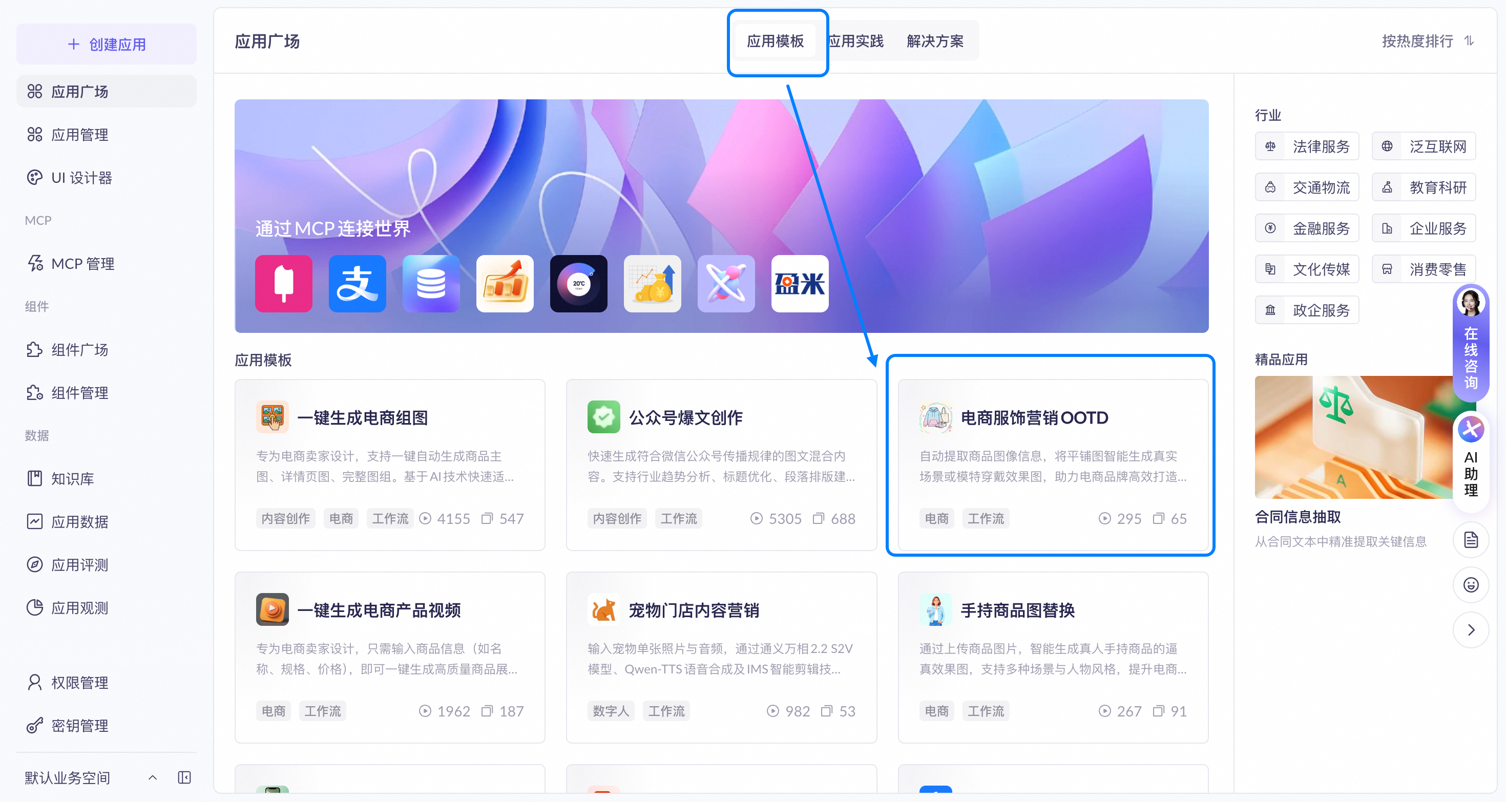 进入「阿里云百炼」 → 选择「应用广场」-「生成」, 即可快速开始