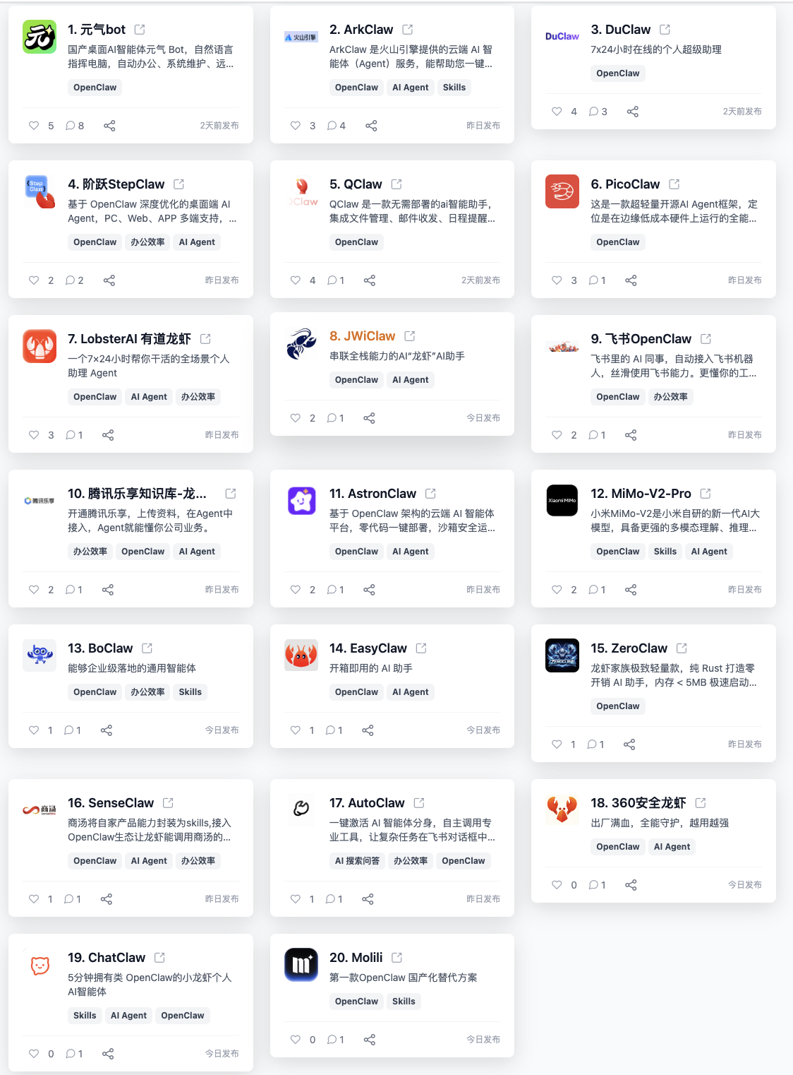 我们简单梳理了一下,目前国内大厂推出的“龙虾产品”已超过 20 款。选择看似变多了,但判断反而更难:功能相近、描述类似,很难快速分辨哪一个真正好用、适合自己。