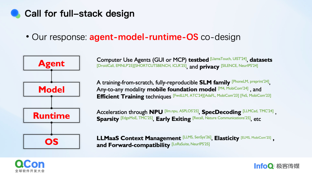 我们团队虽然把题目叫作“操作系统”,听着有点噱头,但确实是从操作系统一路做到上层:推理引擎、模型、应用 agent,都摸了一遍。我本身在北大软件所出身,最早只做系统软件,后来才慢慢往上走,做到算法和应用。