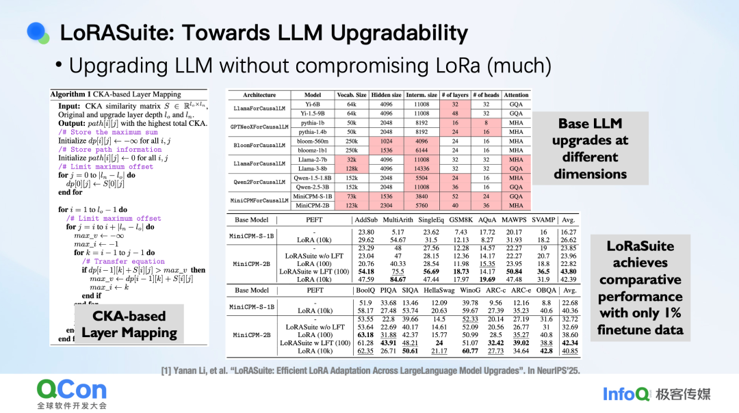 当大模型成为系统级服务后,第三方应用还是得靠 LoRA 接入,因为端侧 3B 模型毕竟知识有限。可模型还能升级吗?操作系统升级不会影响应用,但大模型服务从千问 3 升到千问 4,原来训的 LoRA 就失效了。这是个全新问题。