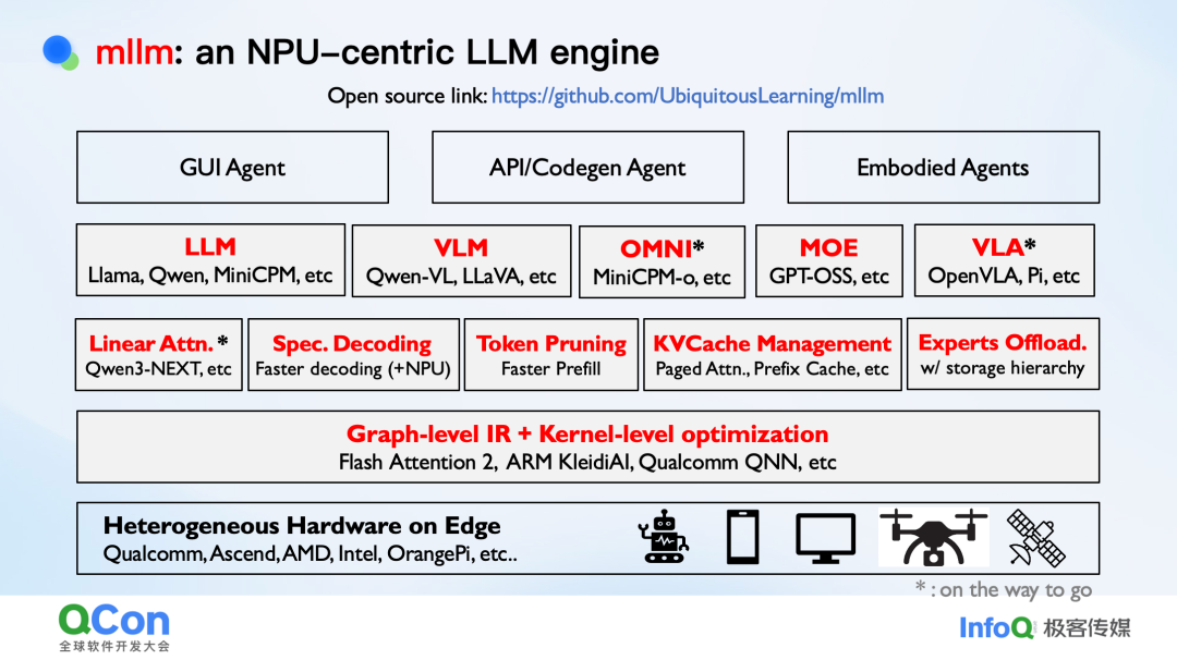 关于我们在推理引擎方面的工作。面向未来,尤其是具身智能这类场景,我觉得应该把 NPU 真正用起来。长期来看,大模型终究要落在 NPU 上跑。