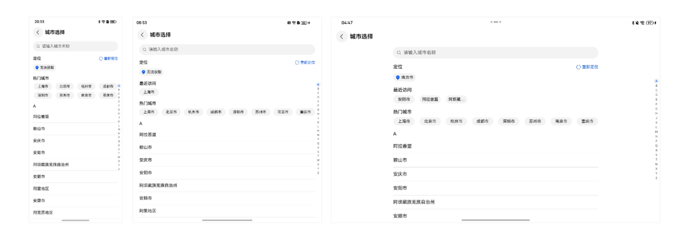 该组件提供选择城市的功能,长按城市按钮将显示城市全称,已完成一多适配开发。