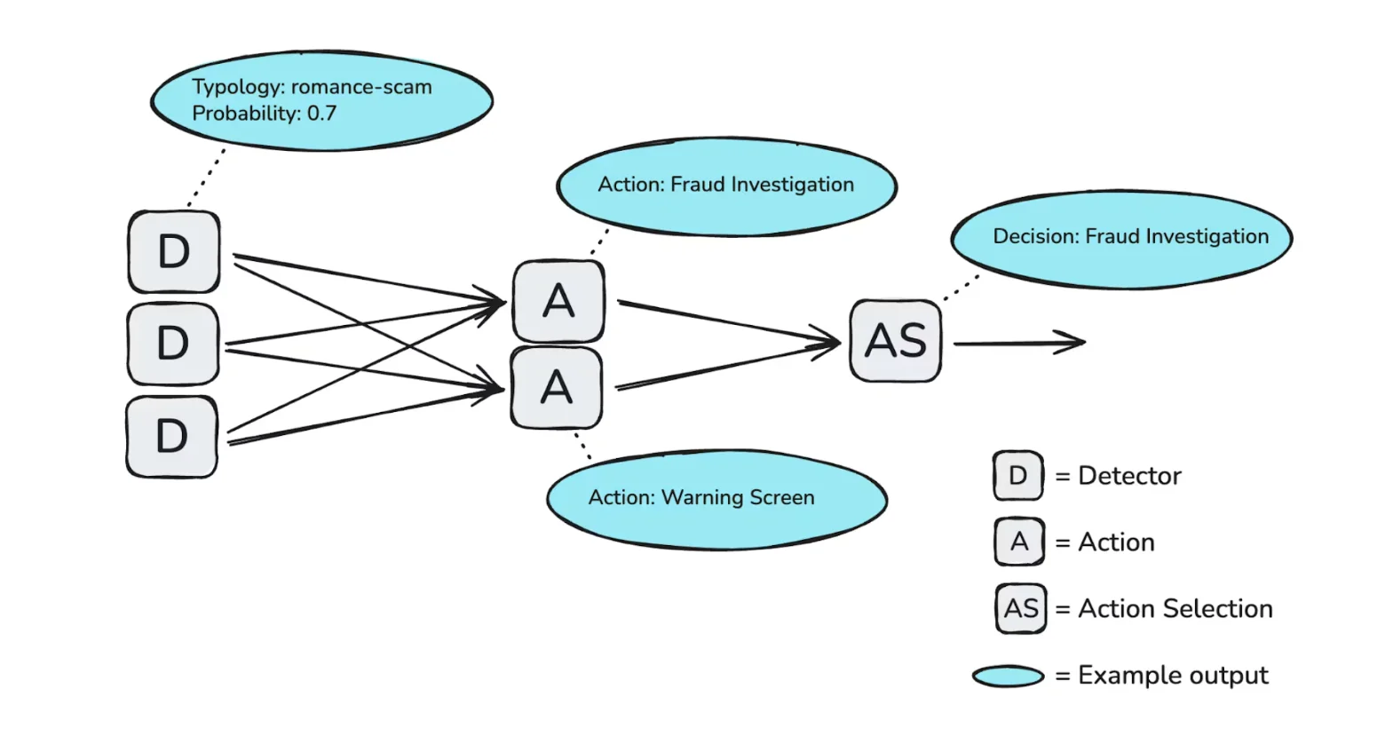 Monzo 将控制措施重新组织为三种类型:检测器(Detector),用于标记可疑活动;动作控制(Action Control),用于推荐干预措施;动作选择控制(Action-Selection Control),用于将建议合并为最终决策。该系统的模块化设计降低了部署新控制措施的风险,并隔离了修改对支付流程的影响。