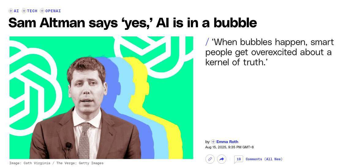 然而,在这片鼓吹之下,裂痕正悄然浮现。GPT-5 系列差评如潮,就连 OpenAI 的 Sam Altman 都提醒道:投资者或许高估了 AI 的回报——“我们是不是正处于对 AI 过度兴奋的阶段?我想是的。”