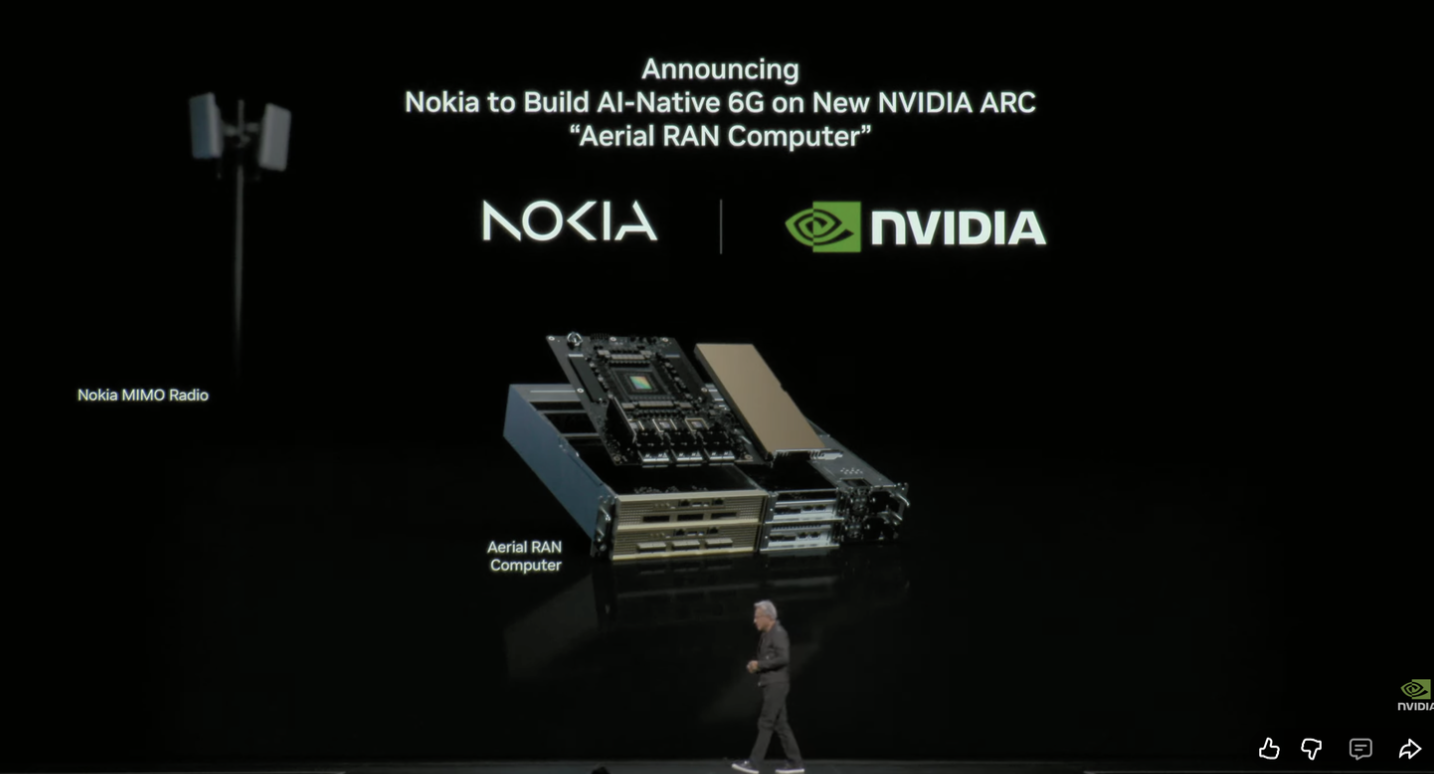 在这次 GTC 上,老黄官宣的第一个合作协议,就是和诺基亚携手共建 6G AI 平台。