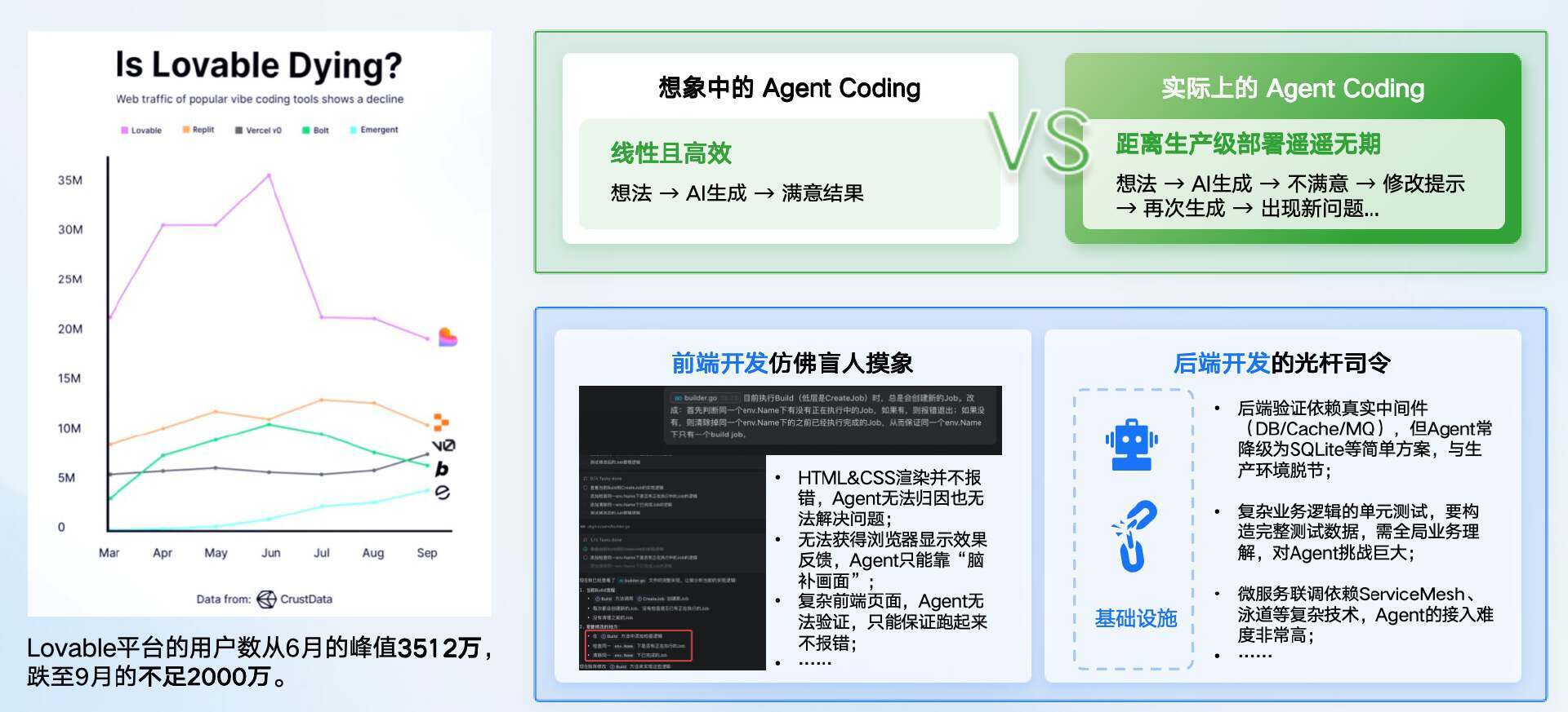 GBOX.AI 创始人张海龙在回顾这一波浪潮时指出:“上半年那一轮 Vibe Coding 的火爆,本质上更像一场‘时尚单品’的流行。大家都去试了一下,但几乎没人续费到第二个月。”