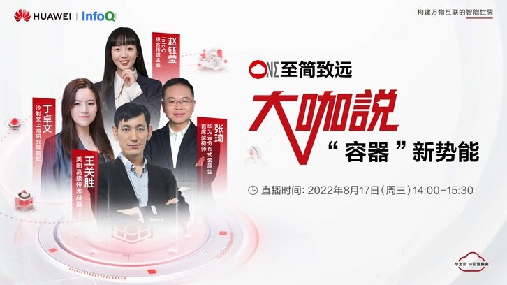 本期华为云大咖说线上分享会的主题为“容器新势能”,主持人为 InfoQ 主编赵钰莹,共分为专家分享与圆桌共话两大环节,以下为直播内容精编整理。