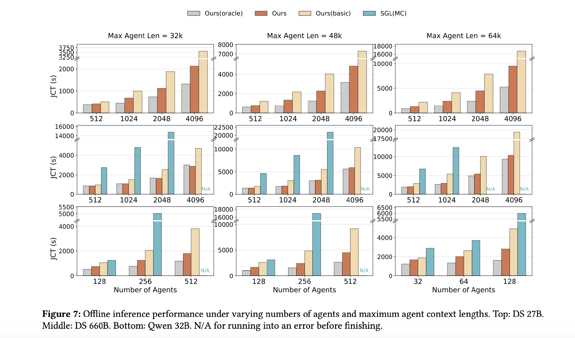 在 660B 模型上,DualPath 相比原始框架最高将作业完成时间缩短至 1/1.87,接近“零 I/O 开销”的理论上限(Oracle);