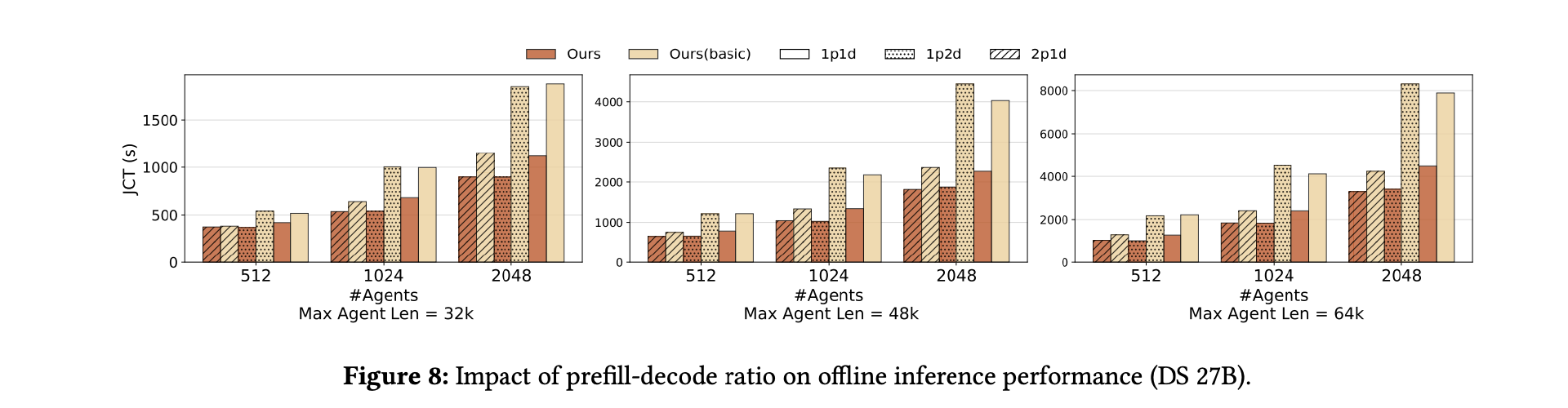论文测试了 1P1D、2P1D、1P2D 等多种配置(P=预填充节点,D=解码节点)。关键观察:
