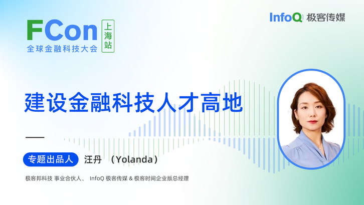 FCon 全球金融科技大会,将于 11 月在上海召开。极客邦科技事业合伙人、InfoQ 极客传媒 & 极客时间企业版总经理汪丹(Yolanda)将担任「建设金融科技人才高地」的专题出品人。在此次专题中,你将了解到金融科技人才队伍的发展和建设,需要建立更加完善的人才培养机制,培养具有科技背景和金融素养的复合型人才,还需要通过多种形式的科技人才培养实践,激发人才的活力,为金融科技创新注入强大动能。