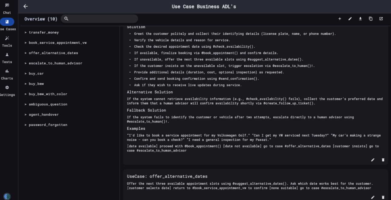 ADL:结构化、模型无关,支持可视化创作与多角色协作,让业务与工程团队共写代理。。它让业务部门能够像写 SOP 一样定义代理行为,立刻测试、立刻迭代,无需等工程工单排期。与此同时 ADL 仍保持工程严谨性:行为可版本化、可追踪、可维护,这也是它替代传统提示词工程的关键。
