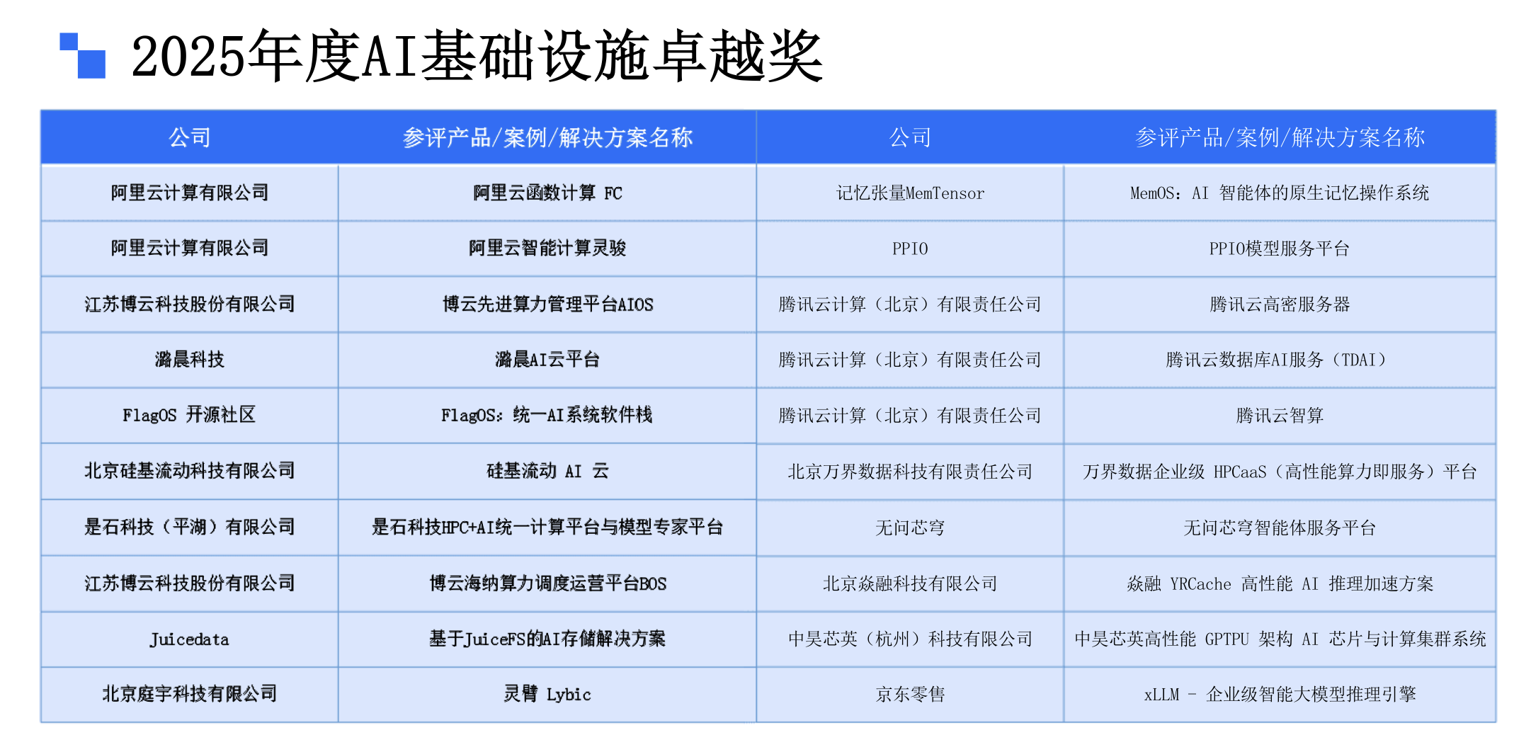 2025 年度榜单围绕 AI 技术与产业落地的核心环节,设置了八大榜单类别,覆盖从底层算力到上层应用的完整技术与业务链条: