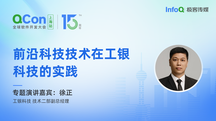 QCon 全球软件开发大会,将于 12 月在上海召开。工银科技技术二部副总经理徐正将发表题为《前沿科技技术在工银科技的实践》主题分享,探讨中国工商银行的金融科技实践、工银科技的产品体系,以及对外输出的案例。