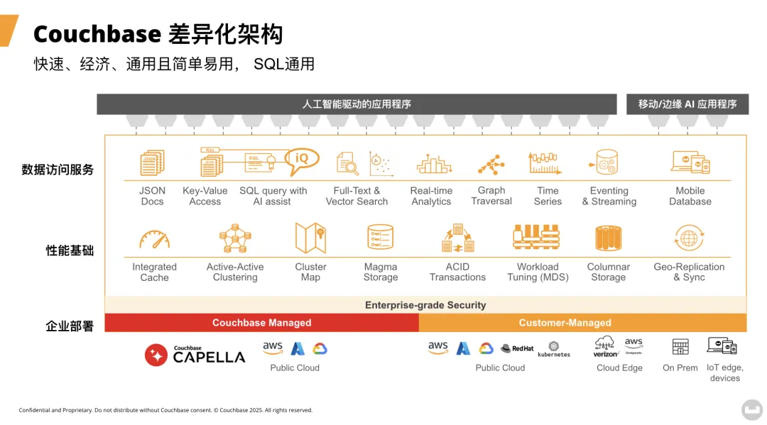 Couchbase 的差异化优势源于其前瞻性的架构设计。它并非简单的键值数据库,而是一个融合了交易、分析、搜索与向量能力的统一平台。