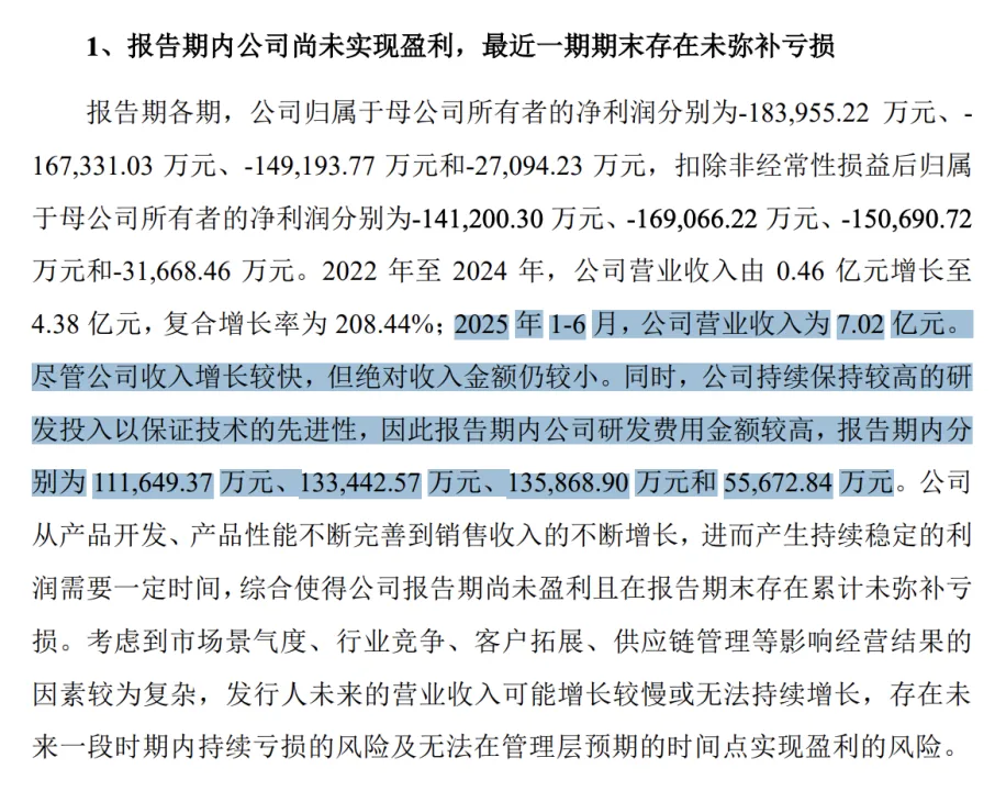 进入 2025 年上半年,公司实现营业收入 7.02 亿元,已超过前三年的总和,亏损幅度有所收窄,归母净利润为 -2.71 亿元。摩尔线程在公告中表示,为了确保技术的先进性与竞争力,公司将继续保持较高的研发投入,并预计最早可在 2027 年实现整体盈利。