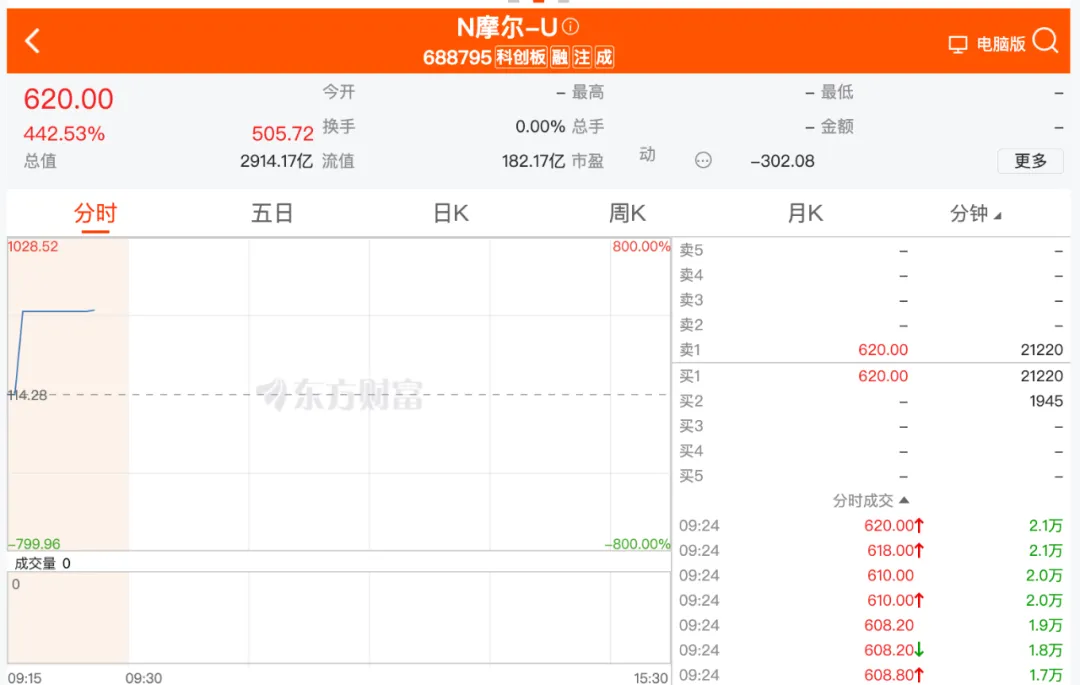今天早上,国产 GPU 企业摩尔线程智能科技(北京)股份有限公司(以下简称“摩尔线程”)正式在科创板挂牌上市,发行价为 114.28 元,股票代码为 688795,截至发稿前,摩尔线程股价已经涨至 620 元/股,总股本 47002.8217 万股,市值已经破 2800 亿元。