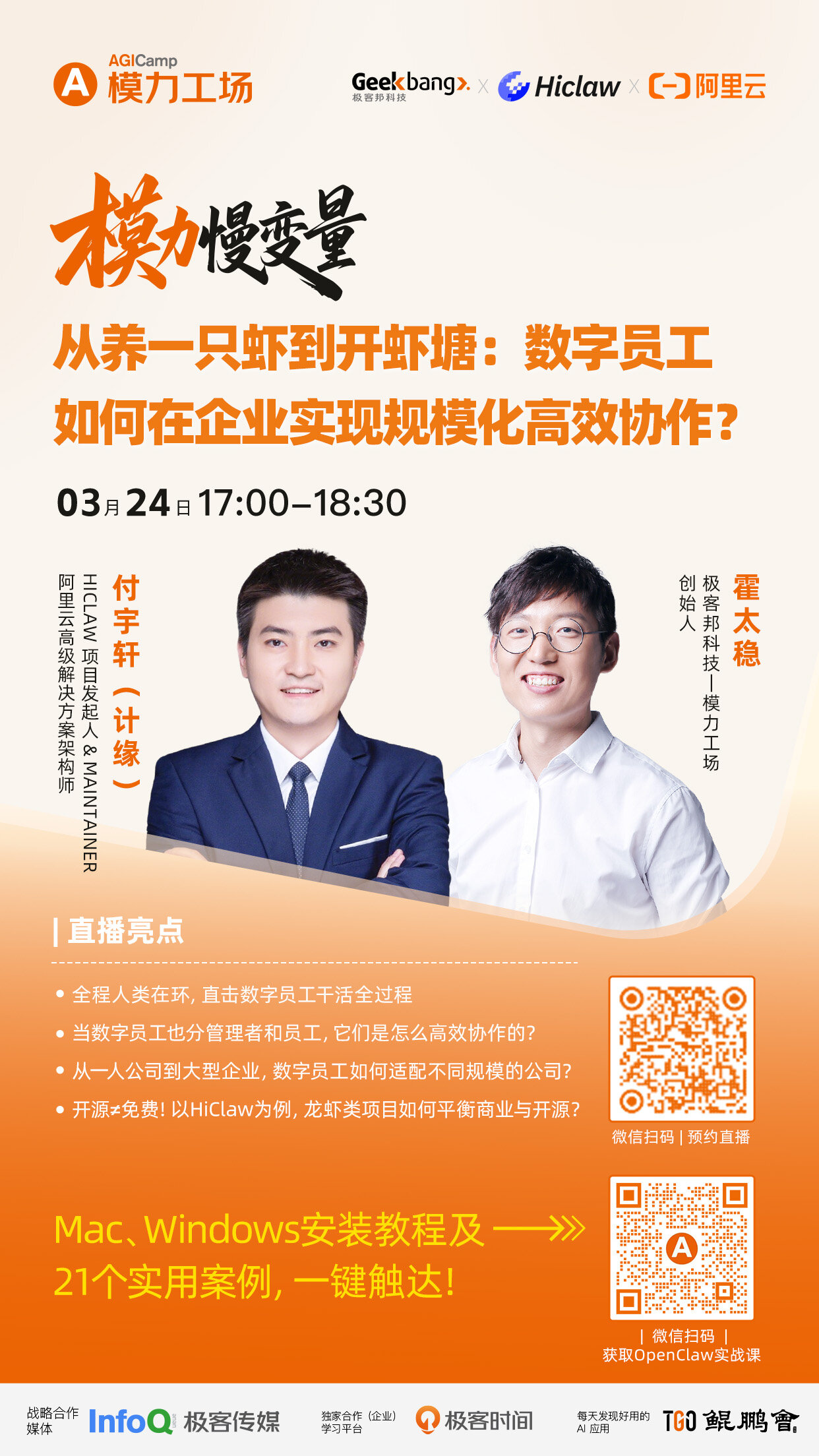 模力工场创始人霍太稳对谈 HiClaw 项目发起人计缘,带你用数字员工高效干活!