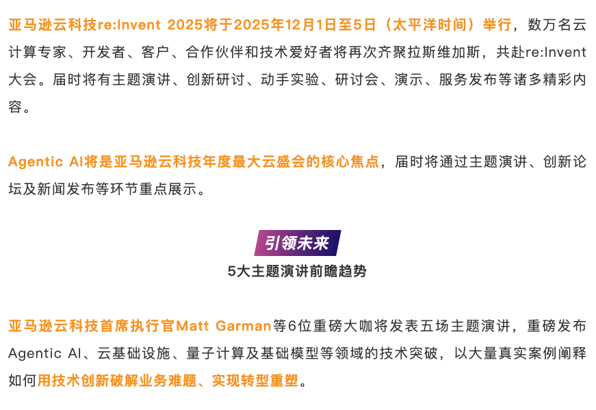 re:Invent 可谓是云计算领域的“春晚”,也是云计算行业的风向标。岁末年尾之际,透过这场大会,我们在看到云计算在过去一年里的发展现状的同时,也能够感知到接下来云计算的发展趋势。