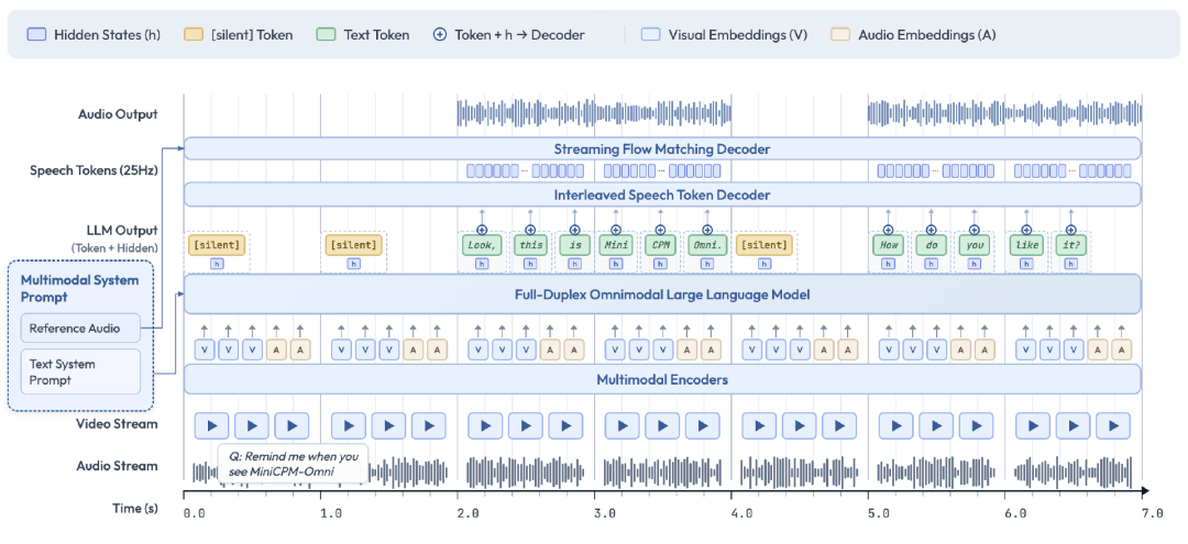 清华大学人工智能学院助理教授、面壁智能多模态首席科学家姚远,主要负责 MiniCPM-o 4.5 的研发。他介绍,该模型主要依赖两项核心创新:一是全双工机制,多模态输入和输出彼此不阻塞,模型可以持续感知外界的视频和音频流,同时进行语音或文本输出,不会因“正在说话”暂停对外界的感知;二是全模态的自主交互机制,模型会持续判断当前语义是否已经成熟,是否达到了适合触发自身输出的时机。
