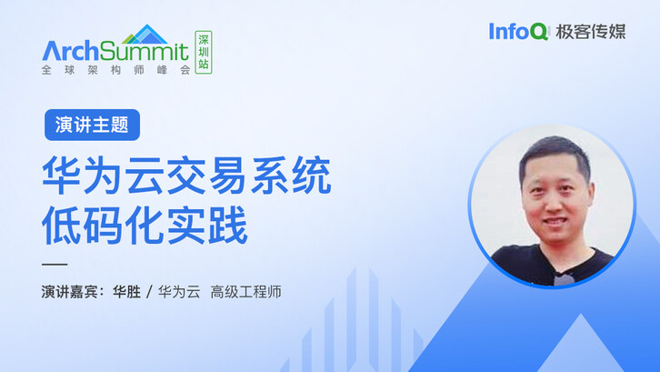 7 月 21 日 - 22 日, 在 ArchSummit 全球架构师峰会(深圳站),华为云高级工程师华胜,将于会上发表题为《华为云交易系统低码化实践》的演讲,具体介绍华为基于规则引擎和流程引擎构建的交易编排平台,分享华为云交易系统低码化实践经验。