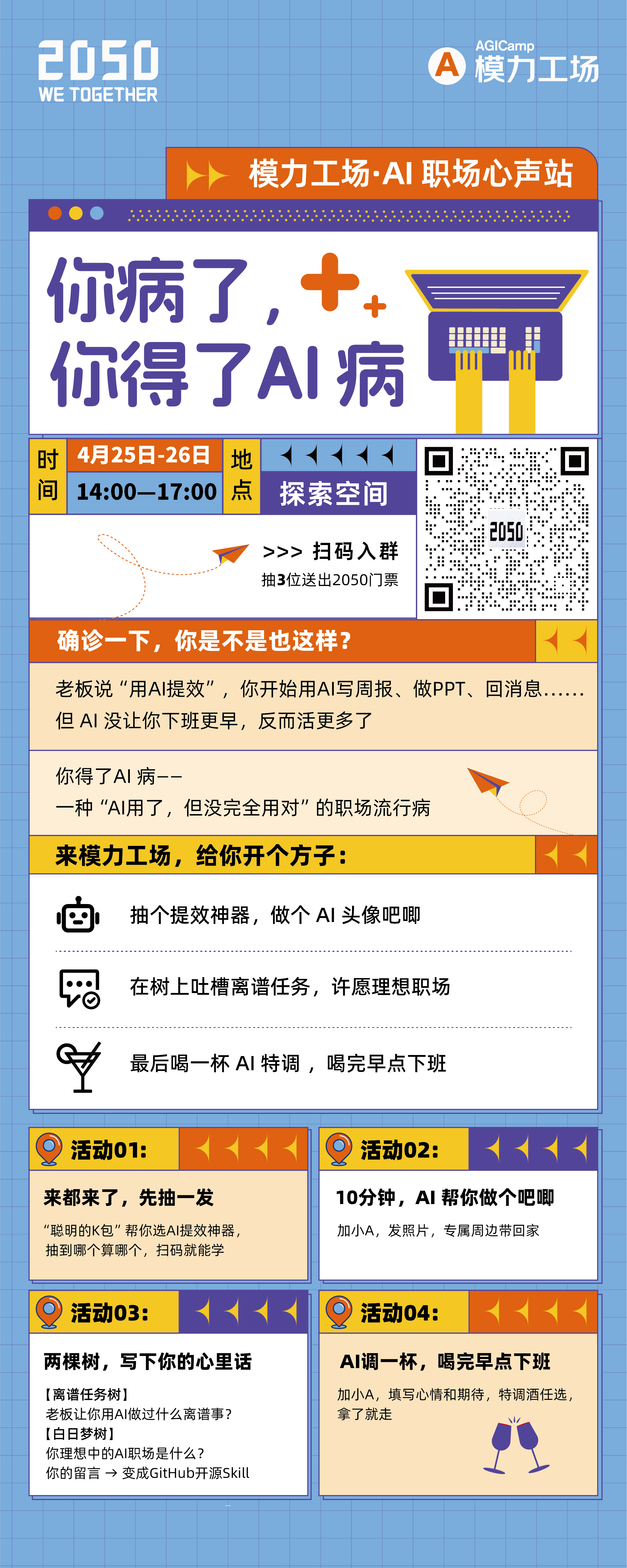 在此,我把我们的活动日程+隐藏玩法全量放出,带你玩转 2050 大会~